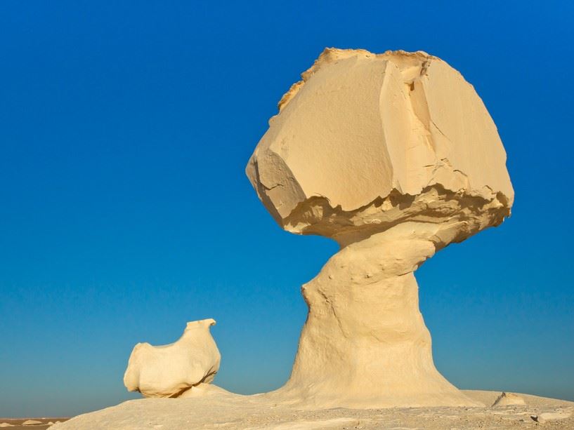 sienikallio: Tuulieroosion synnyttämä kivipilari, jossa tyvi on kapeampi kuin yläosa, koska tuulieroosio on voimakkaampaa lähellä maan pintaa