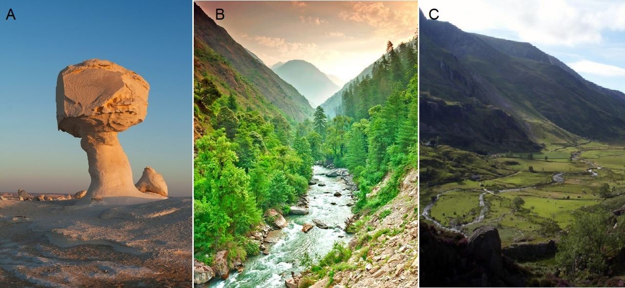 - Kuivilla alueilla tuulieroosio muovaa kallioita ja muodostaa dyynejä.